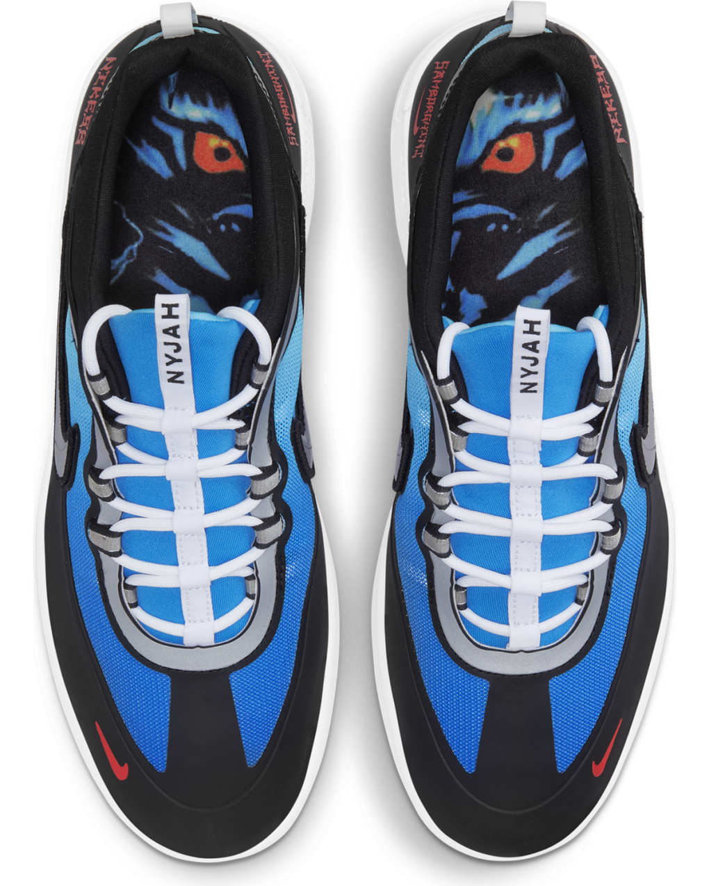 Streetwear-kunstneren Samborghini bringer et helt nyt look til Nike SB Nyjah Free 2 Premium. Grafikken på indersokken og de specialfremstillede logoer viser kunstnerens karakteristiske stil, mens metalliske detaljer og en farveskiftende ombre-effekt på mesh-panelerne forbliver tro mod skoens originale inspiration: den ikoniske Nike Air Zoom Spiridon.
